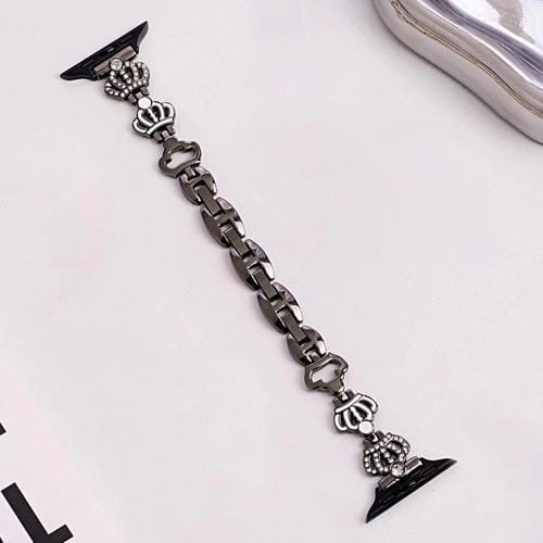 Correa de metal con diamantes y cadena de corona para Apple Watch de 38, 40, 41 y S11 de 42 mm (negro)
