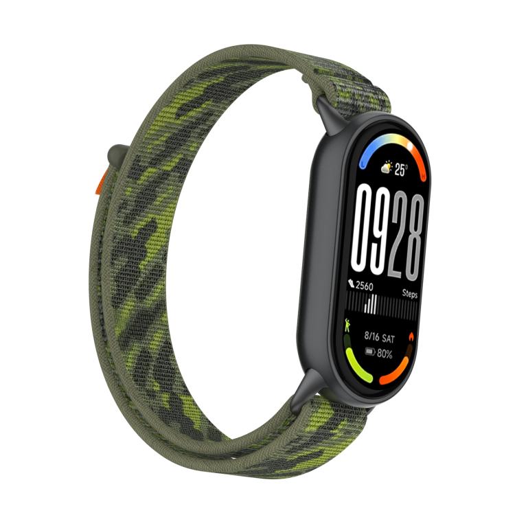 Correa de nailon con cierre de velcro para Xiaomi Smart Band 10/9/8 (verde camuflaje)