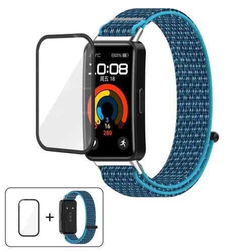 Correa de reloj con cierre de velcro de nailon y película curva 3D para Huawei Band 9/9 NFC (azul marino)