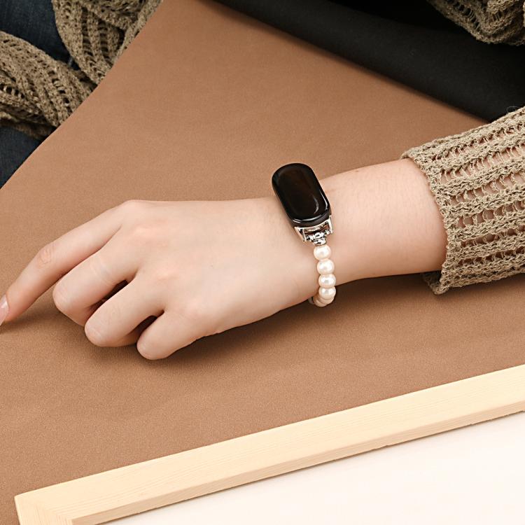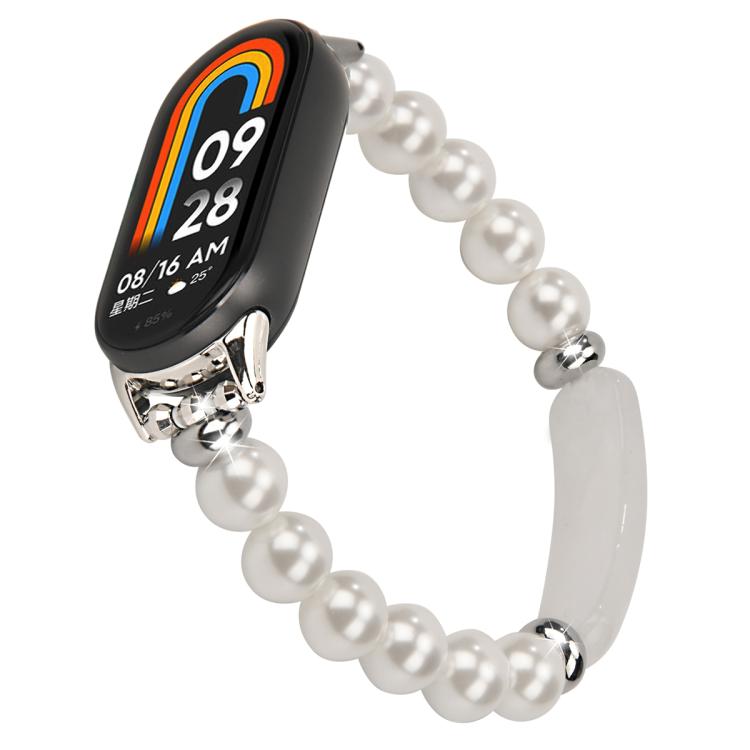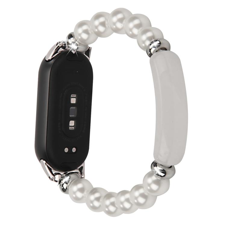 Correa de reloj con cuentas grandes para Xiaomi Smart Band 10/9/8 (cuentas blancas)