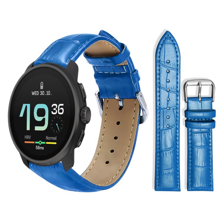 Correa de reloj de cuero con hebilla de pasador y textura de bambú de 22 mm para Suunto Race S / Race / 9 Peak / 5 Peak xDfind (azul)