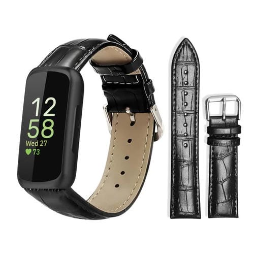 Correa de reloj de cuero con hebilla de pasador y textura de bambú para Fitbit Inspire 3 de 12 mm (negro)