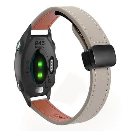 Correa de Reloj de Cuero Microfibra 20mm con Hebilla Magnética para Garmin Forerunner 245 Music (Gris)