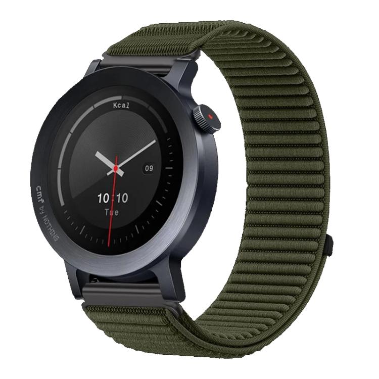 Correa de reloj de nailon tejido con cierre de velcro y interfaz metálica para CMF Watch 3 Pro (verde abeto)