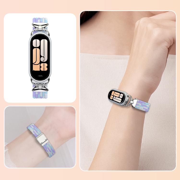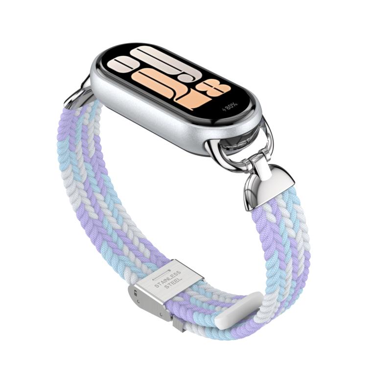 Correa de reloj trenzada de nailon de dos secciones con cabezal metálico para Xiaomi Smart Band 10/9/8 (violeta)