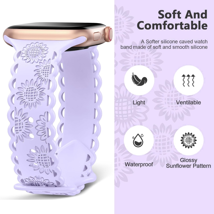 Correa de Silicona Apple Watch SE 44mm Estampado Girasoles en Relieve (Morado Lavanda)