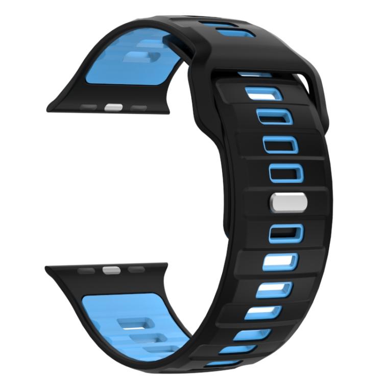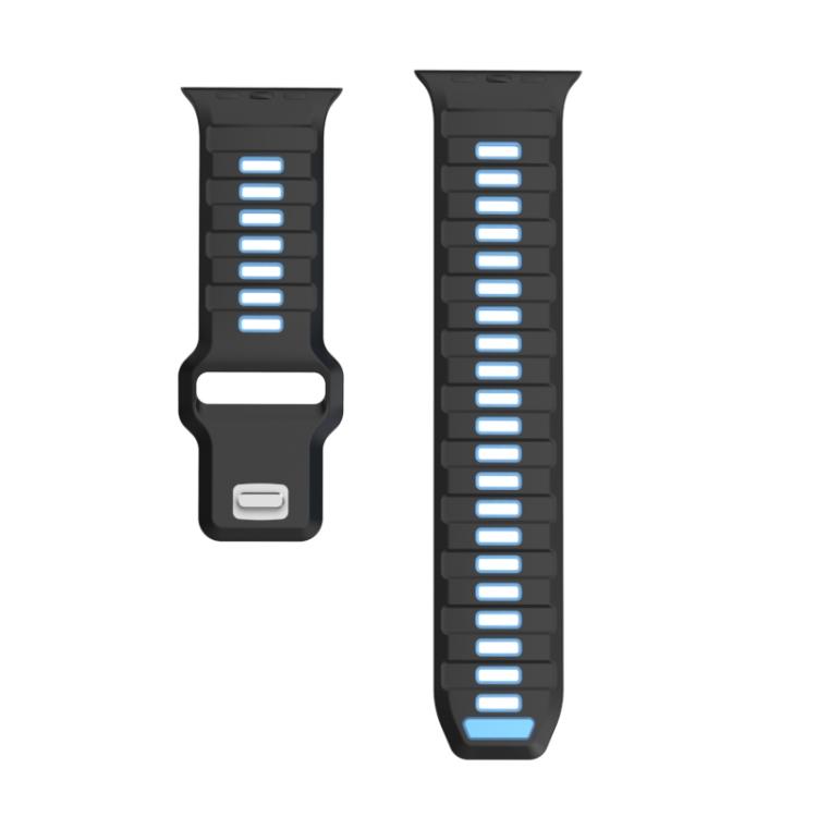 Correa de silicona con hebilla invertida a cuadros para Apple Watch de 46 mm, 49 mm, 45 mm y 44 mm (negro y azul)