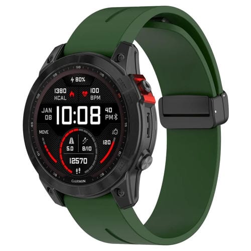 Correa de Silicona para Reloj Garmin Fenix 7X con Hebilla Negra Plegable Magnética (Verde Militar)