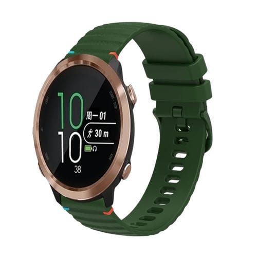 Correa de Silicona Garmin Forerunner 645 Music 20mm con Costuras Onduladas y Puntos (Verde Militar)