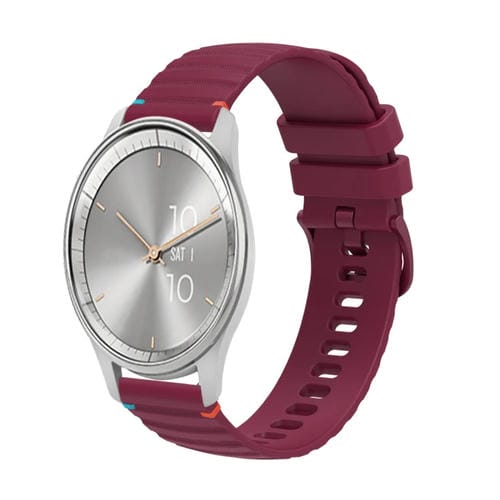 Correa de Silicona Garmin Move Trend 20mm Puntadas Onduladas Puntos (Rojo Vino)
