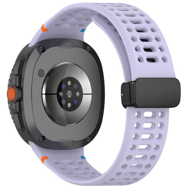 Correa de silicona transpirable con costuras y hebilla magnética negra para Samsung Galaxy Watch8/Watch8 Classic (morado)