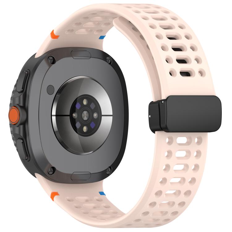 Correa de silicona transpirable con costuras y hebilla magnética negra para Samsung Galaxy Watch8/Watch8 Classic (rosa)