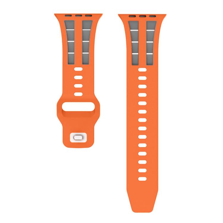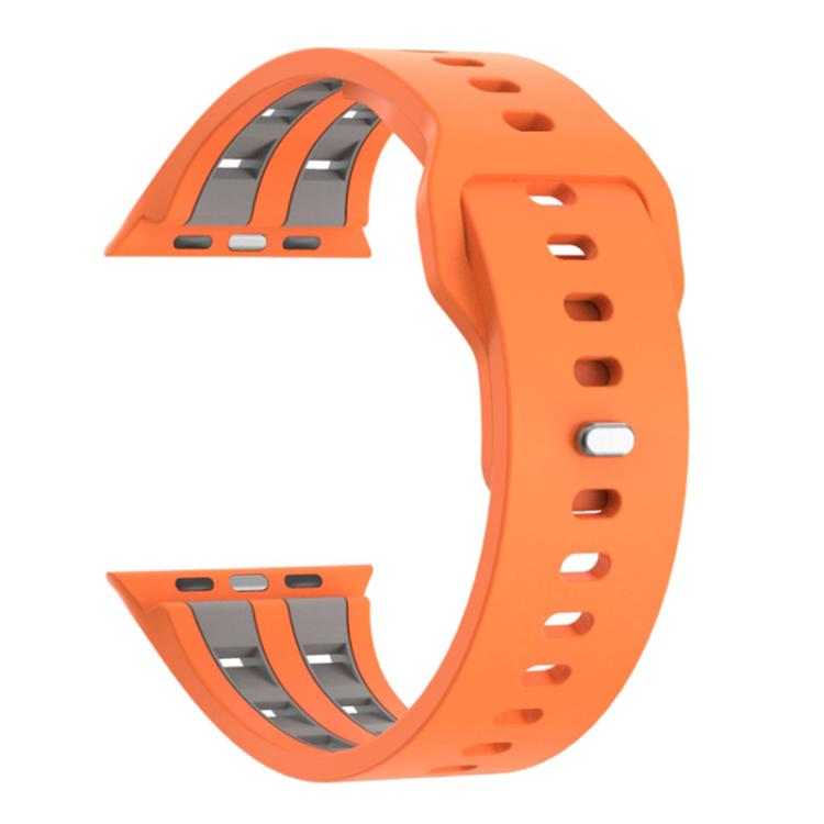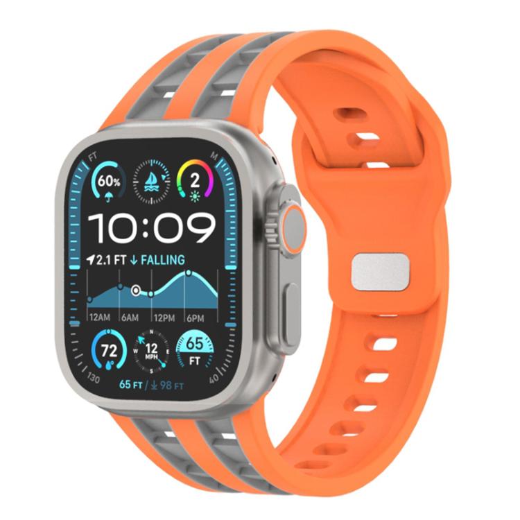 Correa de silicona transpirable de doble fila para Apple Watch de 46 mm, 49 mm, 45 mm y 44 mm (naranja y gris)