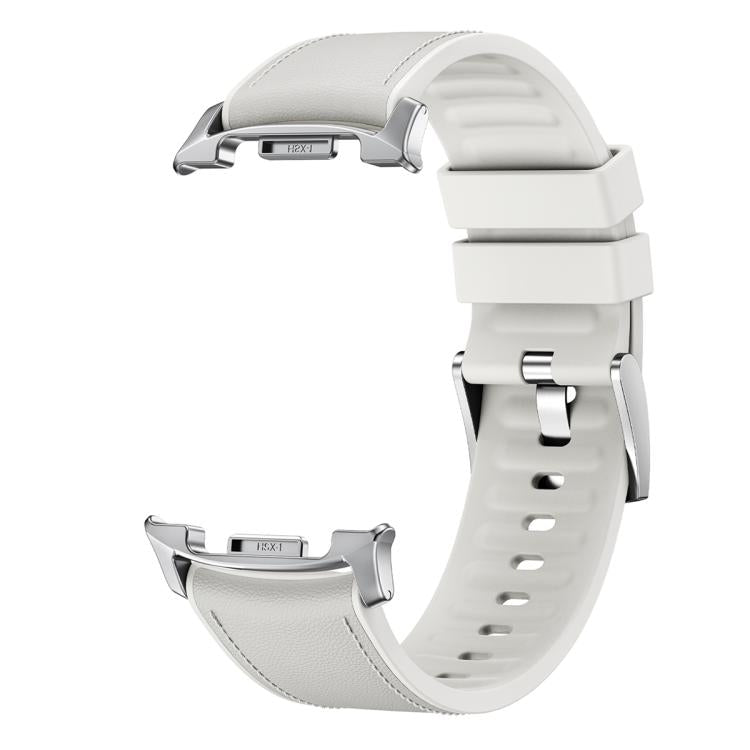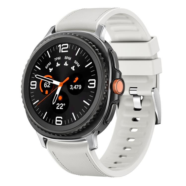 Correa de silicona y piel para Samsung Galaxy Watch8 Classic de 46 mm con película curva 3D (beige)
