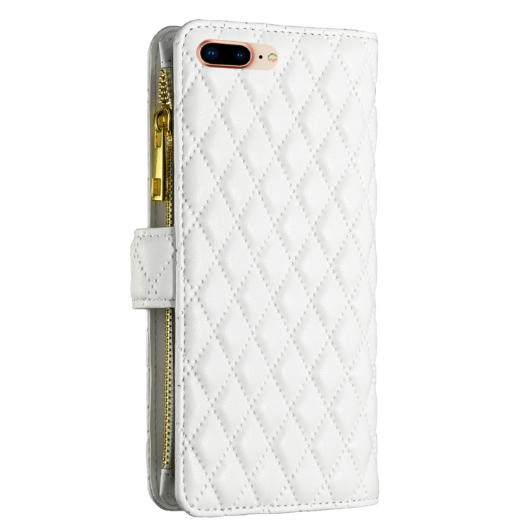 Funda Flip Wallet Diamond Lattice para iPhone 7 Plus / 8 Plus (Blanco)