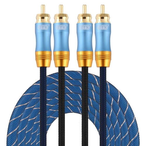 Cable de Audio Coaxial Emk 2 x RCA Macho a 2 x RCA Macho Chapado en Oro Nylon Trenzado 5 m (Azul Oscuro)