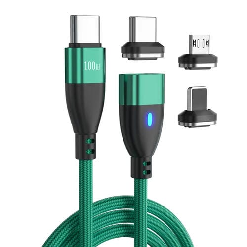 Cable 3 en 1 Enkay PD100W Tipo-C a Tipo-C / 8 Pines / Micro USB Carga Rápida Magnético (Verde)