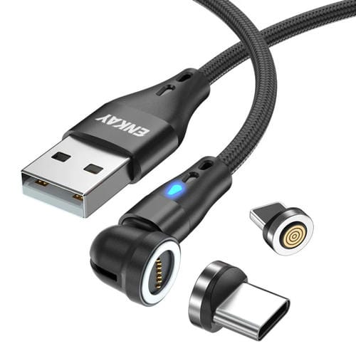 Cable USB A Tipo-C Enkay 3A Carga Rápida Giratorio Magnético 8 Pines (Negro) 1 m