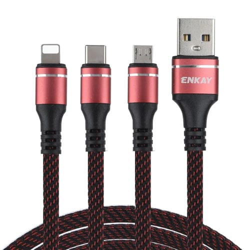 Cable 3 en 1 Enkay Enk-Cb121 USB 3.0 A Tipo-C 8 Pin Micro USB 5A 1.5M (Negro+Rojo)