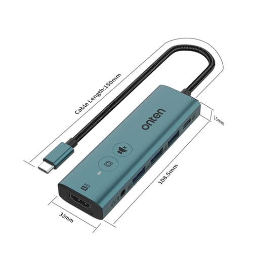 La Estación de Acoplamiento Hub Multifunción Onten UC123 es un dispositivo versátil diseñado para ampliar la conectividad de equipos con Puerto USB-C. Este hub permite la Conexión simultánea de múltiples dispositivos, facilitando la transmisión de video en alta definición, transferencia de datos y Conexión de periféricos. Compatible con Tablets, Teléfonos inteligentes y Portátiles que dispongan de interfaz USB-C, ofrece una solución eficiente para usuarios que requieren ampliar las capacidades de sus dispositivos sin necesidad de controladores Adicionales, gracias a su funcionalidad plug and play. Su diseño compacto y ligero, junto con una longitud de Cable de 1,5 metros, lo hace adecuado para entornos de trabajo Móviles y fijos. Entre sus funciones Principales destacan la salida HDMI 4K a 30Hz, Puertos USB 3.0 y USB 2.0, entrada de Alimentación USB-C y una interfaz de audio de 3,5 mm, además de Botones integrados para control de silencio y apagado de Pantalla.