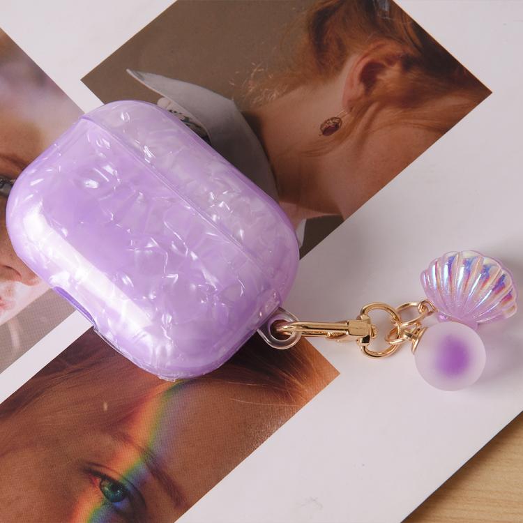 Estuche para auriculares AirPods Pro con textura de perla y hebilla colgante (morado claro)