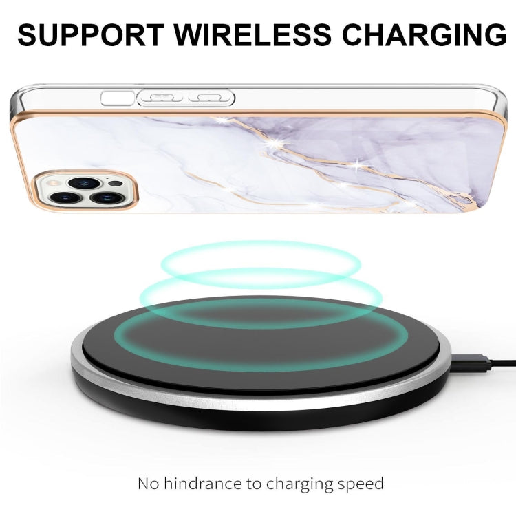 Estuche para Teléfono Imd TPU Doble Cara Patrón Mármol Galvanoplastia iPhone 16 Pro (Blanco)