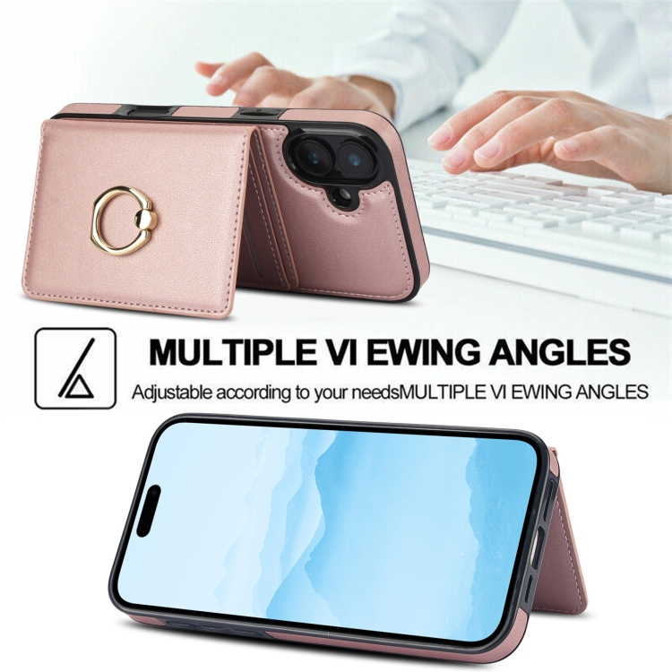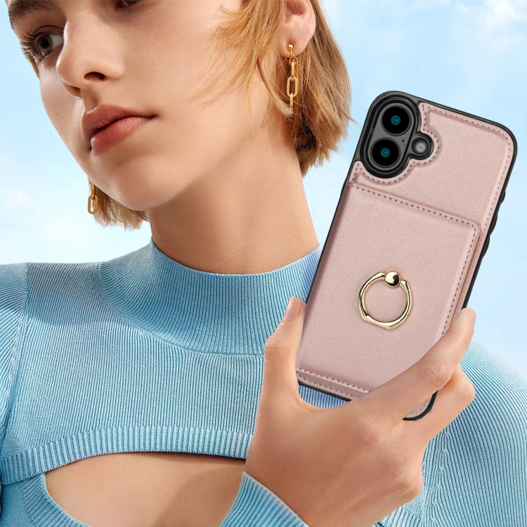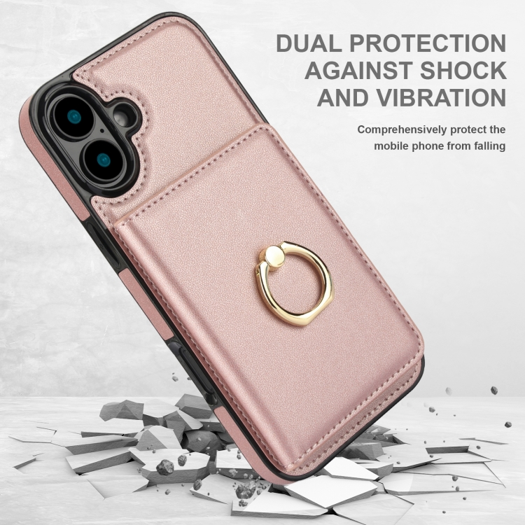 Estuche para Teléfono con Anillo para Tarjeta Antirrobo Rfid iPhone 16 Plus (Oro Rosa)
