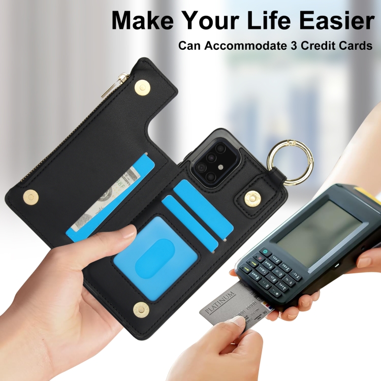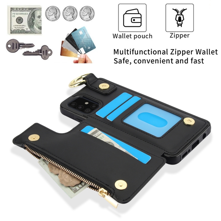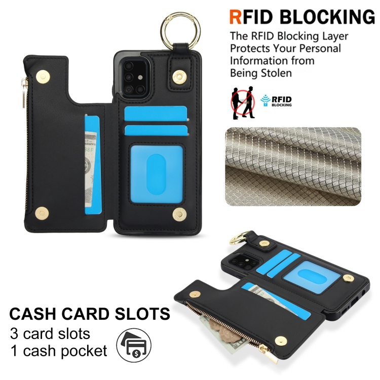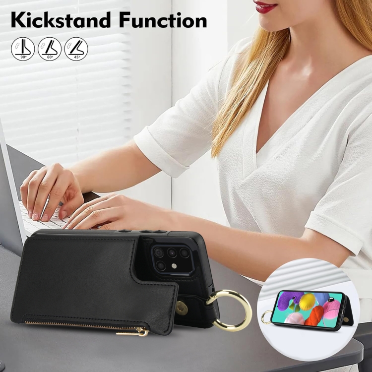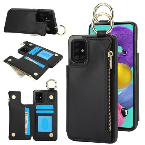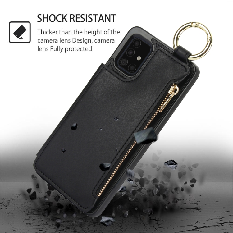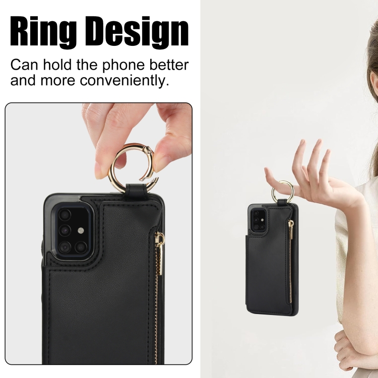 Estuche para Teléfono Samsung Galaxy A71 4G Rfld Cremallera y Anillo Doble Hebilla Antirrobo (Negro)