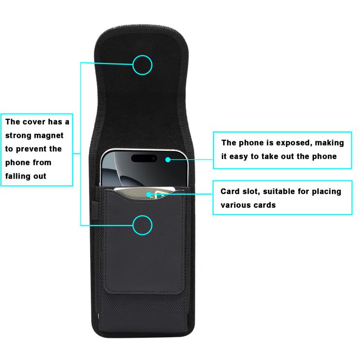 Estuche para Teléfono Tela Oxford 6,2-6,5" con Hebilla Magnética y Ranura para Tarjetas (Negro)