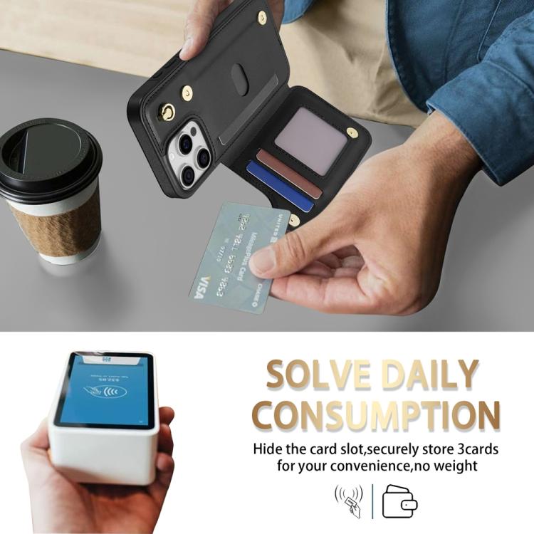 Estuche para Teléfono Rombal iPhone 11 Pro Ranuras Tarjetas Hebilla Cordón (Negro)