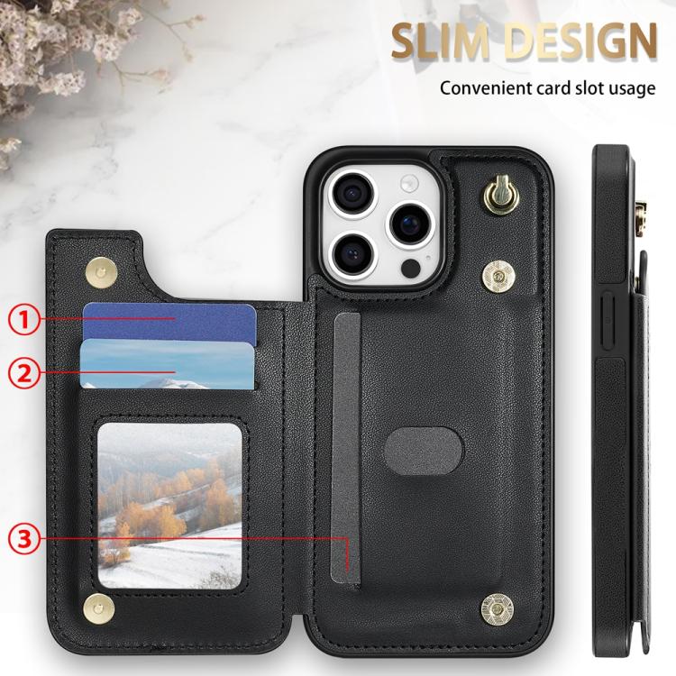 Estuche para Teléfono Rombal iPhone 13 Pro Max con Ranuras para Tarjetas y Cordón (Negro)