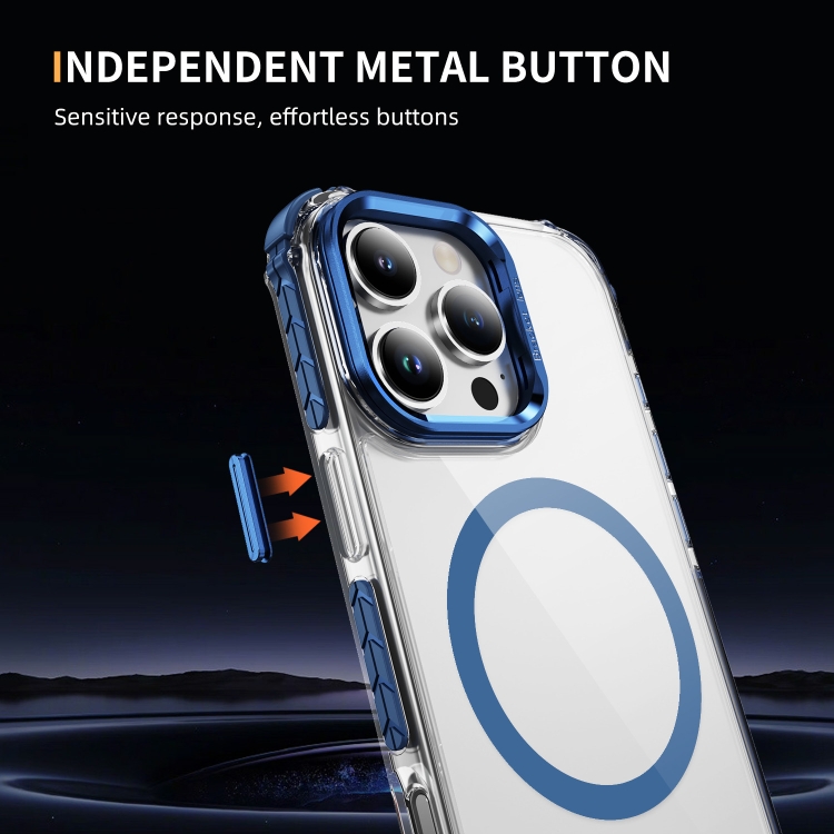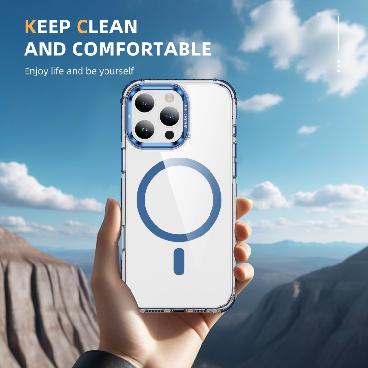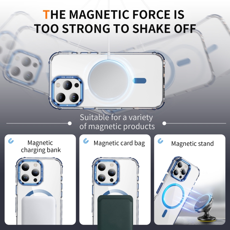 Estuche para Teléfono Rainbow con Soporte para Lente Magsafe para iPhone 16 Pro Max (Azul)