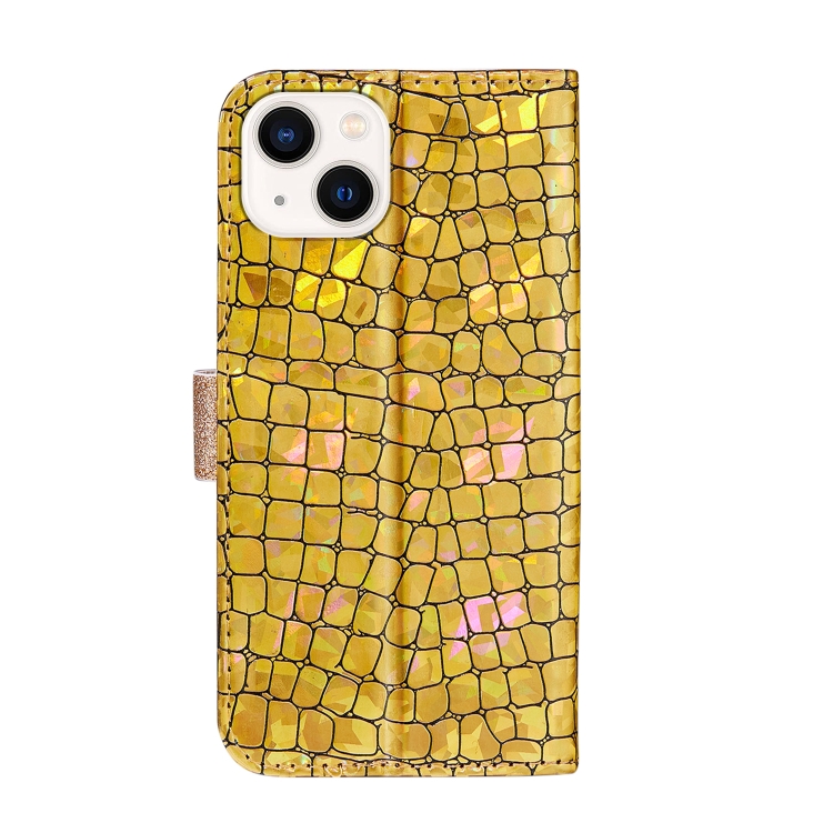 Estuche para Teléfono Cuero Textura Cocodrilo iPhone 14 Max (Oro)
