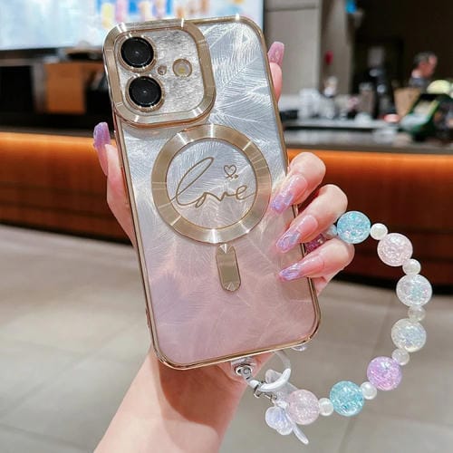 Estuche para Teléfono TPU Magsafe iPhone 16 Plus Diseño Plumas Purpurina (Dorado)