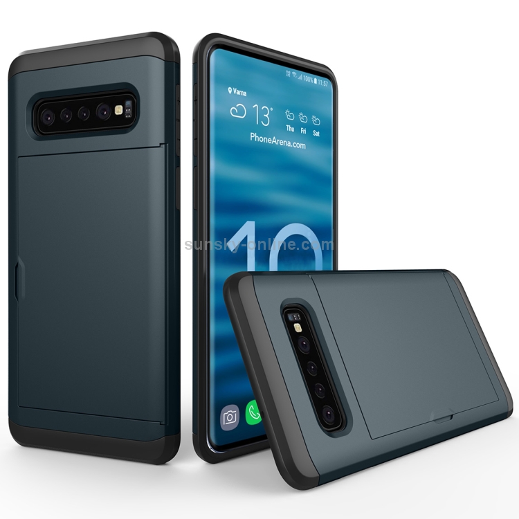 Estuche Protector Armadura Galaxy S10 con Ranura para Tarjeta (Azul Marino)