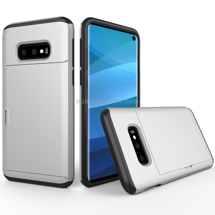Estuche Protector Armadura Samsung Galaxy S10E Resistente Golpes con Ranura para Tarjeta (Plateado)
