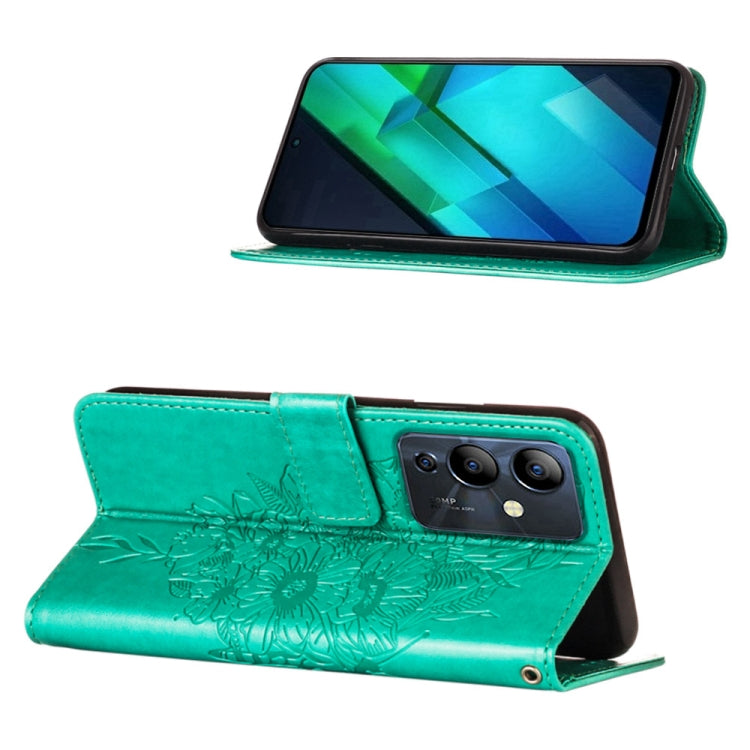 Estuche de Cuero Forinfinix Note 12I 2023 / G85 con Mariposa en Relieve (Verde)