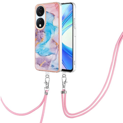 Funda TPU a Prueba de Golpes con Patrón Galvanoplastia Imd y Cordón para Honor X7B 4G/5G (Mármol Azul Vía Láctea)