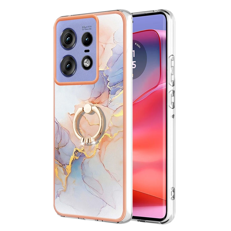 Funda TPU con Soporte Anillo Diamantes Motorola Edge 50 Pro (Mármol Blanco Vía Láctea)