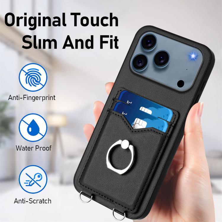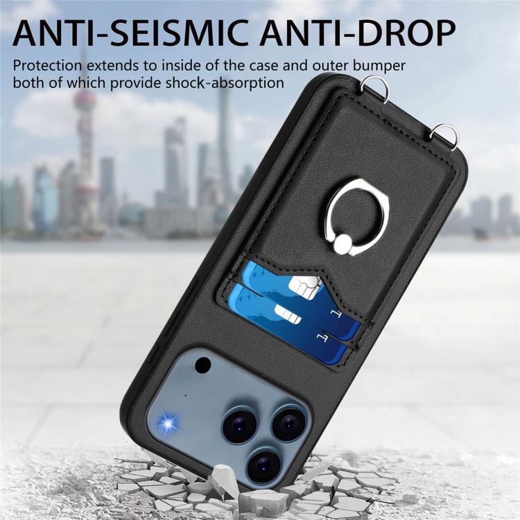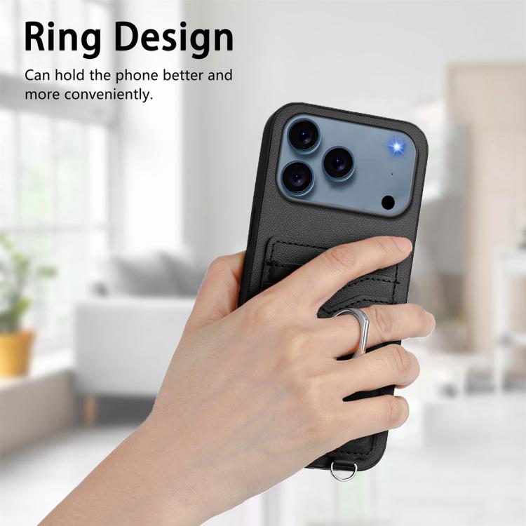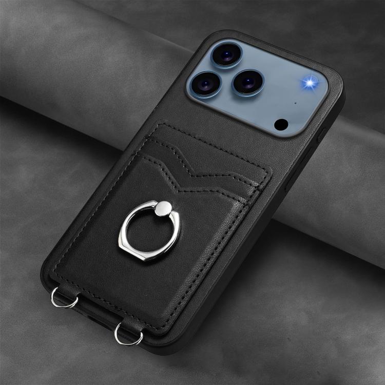 Funda con tarjetero y anillo para iPhone 17 Pro R20 (negra)
