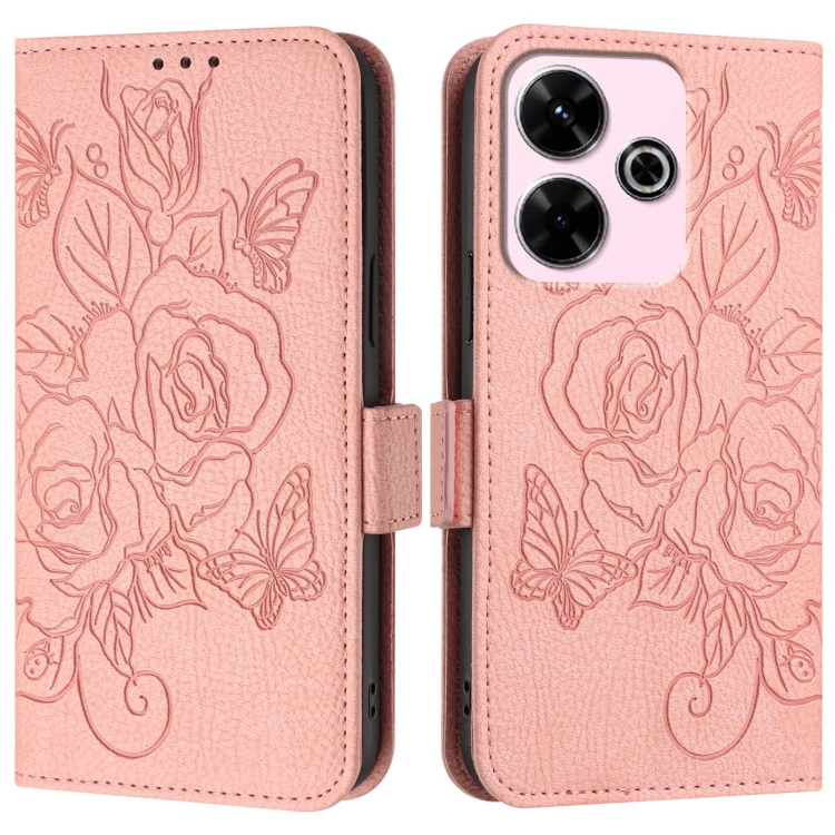 Funda de Cuero Antirrobo con Rfid En Relieve para Redmi 13 4G/Note 13R (Rosa)