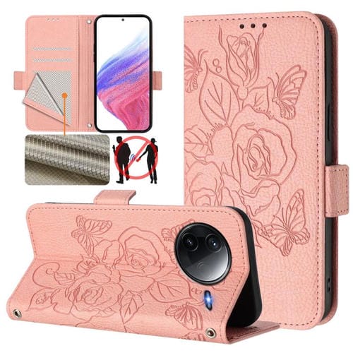 Funda de Cuero Antirrobo con Rfid En Relieve para Redmi K80 5G/K80 Pro 5G (Rosa)