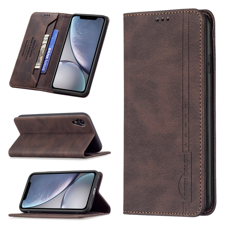 Funda de Cuero Antirrobo Bloqueo Rfid Magnético con Soporte y Ranuras para Tarjeta y Billetera para iPhone Xr (Brown)