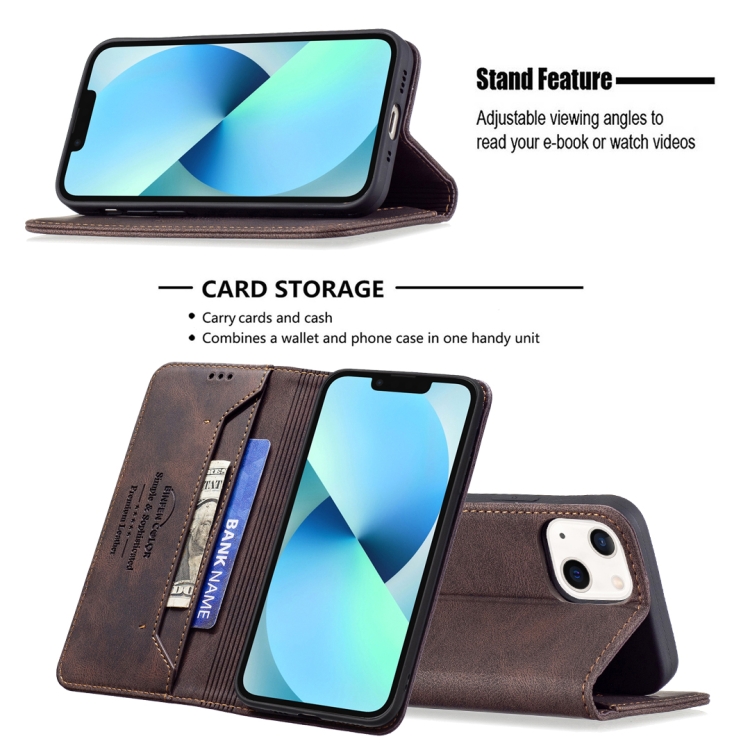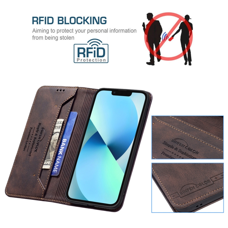 Funda de Cuero Antirrobo Bloqueo Rfid Magnético con Soporte y Billetera para iPhone 13 Mini (Brown)