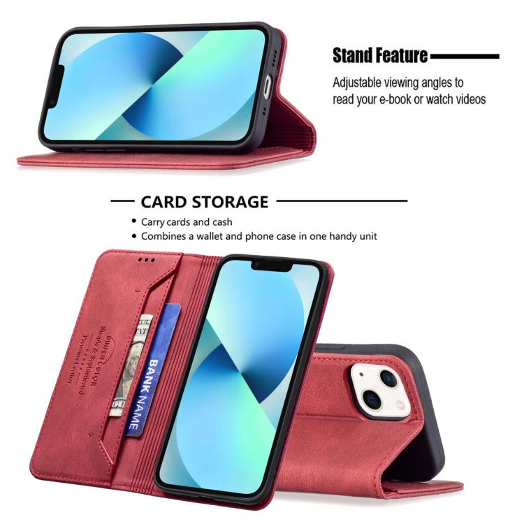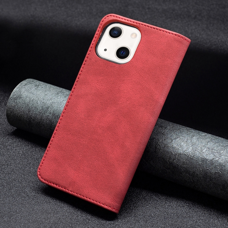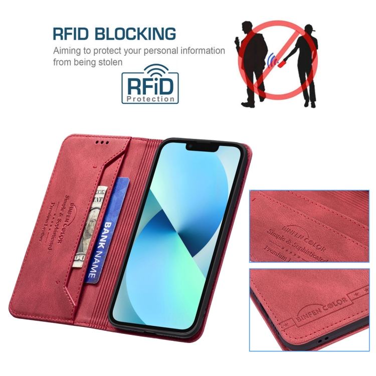 Funda de Cuero Antirrobo Bloqueo Rfid Magnético con Soporte y Billetera para iPhone 13 Mini (Rojo)