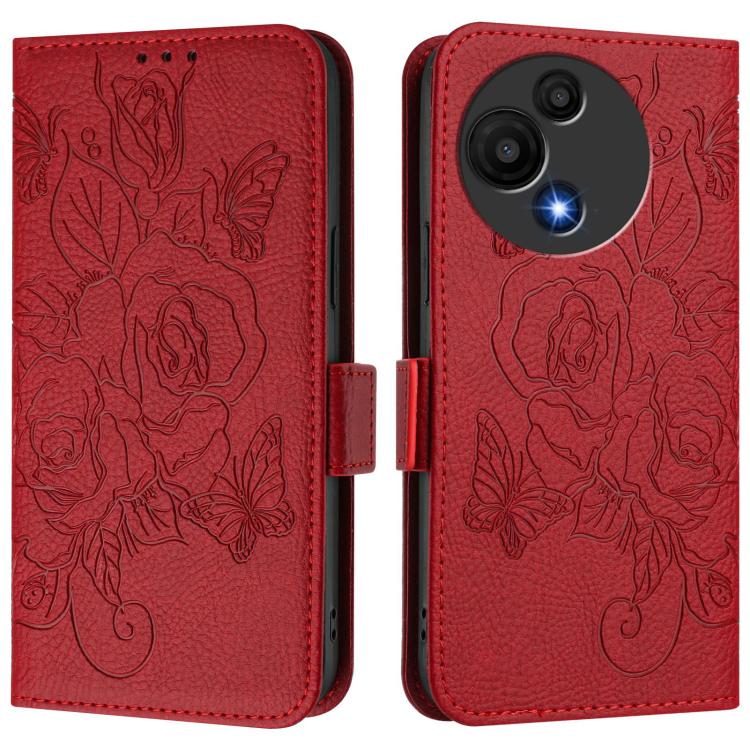 Funda de cuero antirrobo RFID con relieve rosa para TCL 605/60 SE (roja)