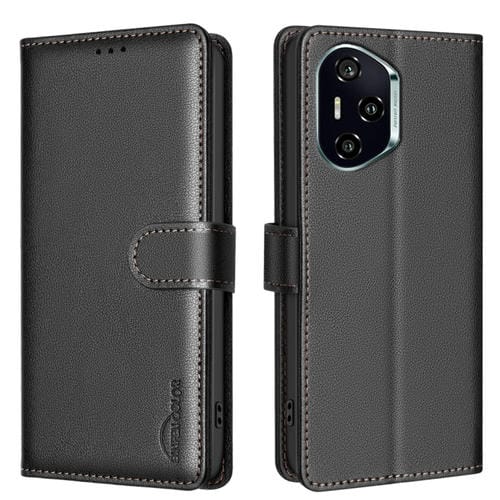 Funda de Cuero Antirrobo Rfid para Honor 300 Pro/300 Ultra con Textura de Lichi (Negra)