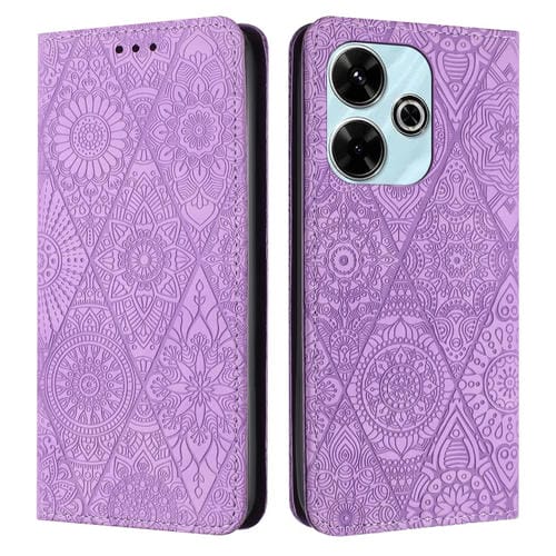 Funda de Cuero con Adsorción En Relieve Étnico para Xiaomi Redmi 13 4G (Morado)