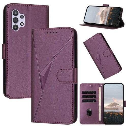 Funda para Samsung Galaxy A32 5G Cuero Cierre de Hebilla Diseño Triángulos (Morado Oscuro)
