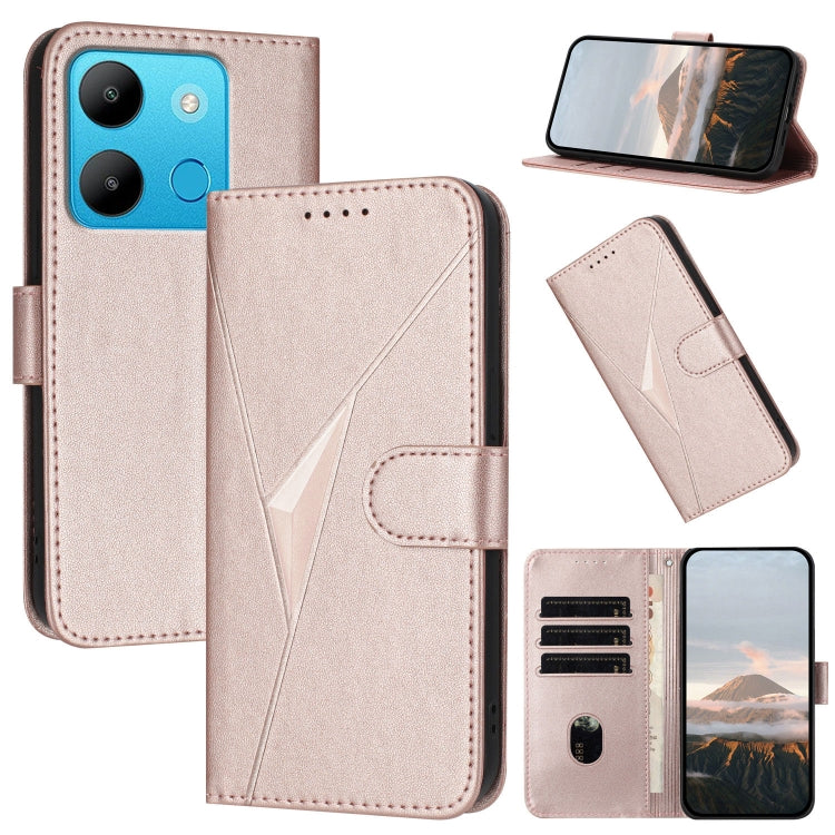 Funda de Cuero con Cierre de Hebilla y Diseño Triangular para Infinix Smart 7 (Oro Rosa)